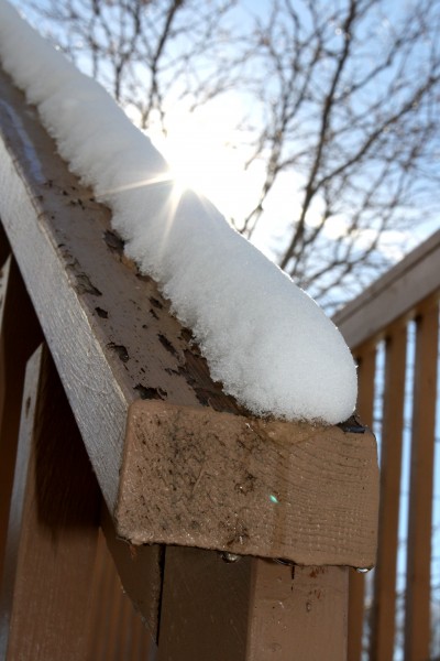 Melting Snow on Deck Rail admin January 5, 2011 Posted in Sunlight, Winter Share: TwitterFacebookPinterestLinkedin Melting Snow on Deck Rail - Free High Resolution Photo - Dimensions: 2592 × 3888 Click Here to Download Full Resolution Image Free high resolution photo of melting snow on a deck railing with the sun in the background. This picture is free for any use.